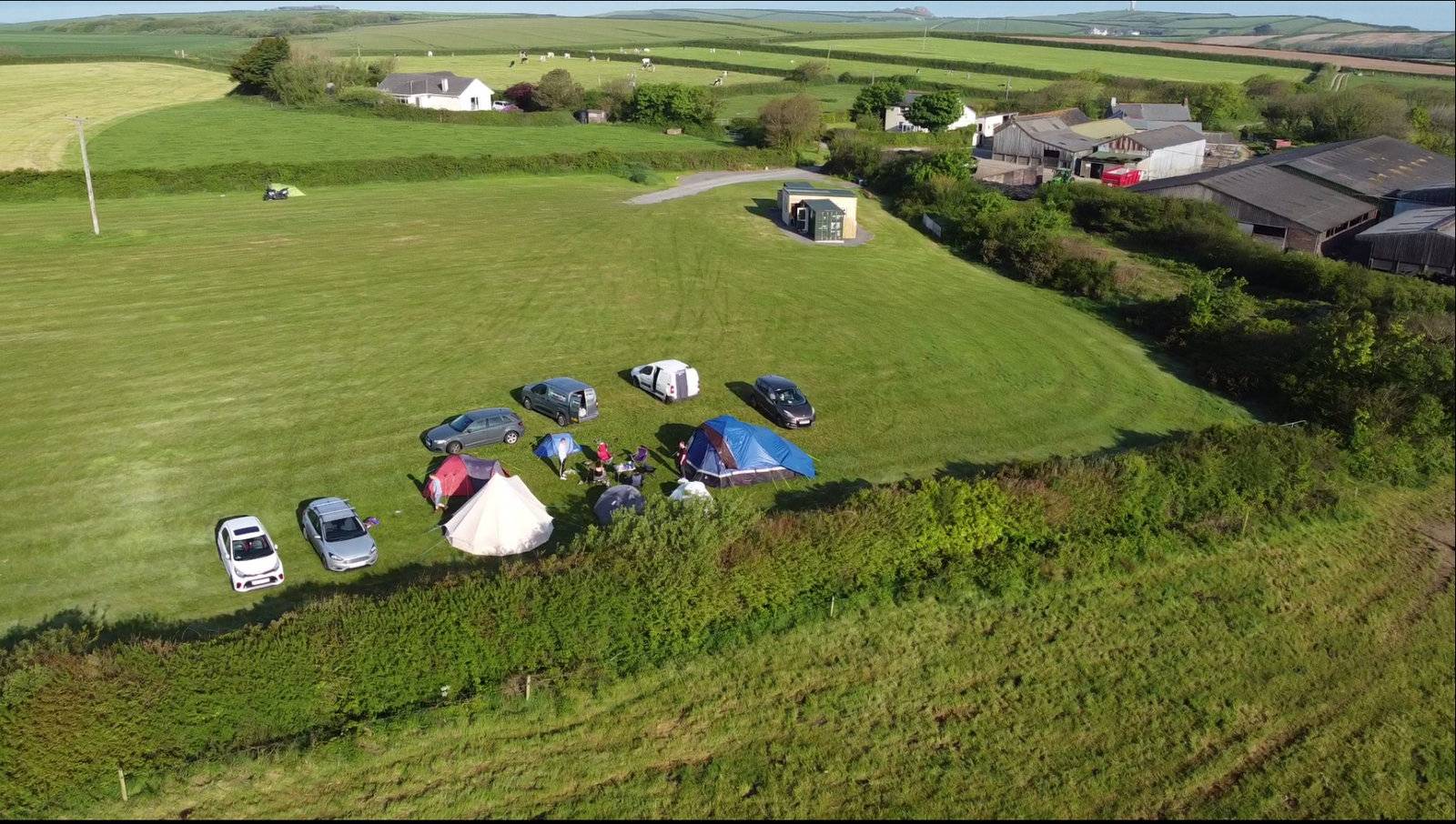 Pitt Farm is located about a mile inland from the atlantic coast and Hartland point and is popular with walkers who arrive just with a kit bag and as well as well as family groups with tents and camper vans. These are some drone images taken by campers recently.